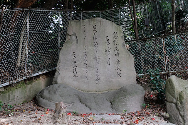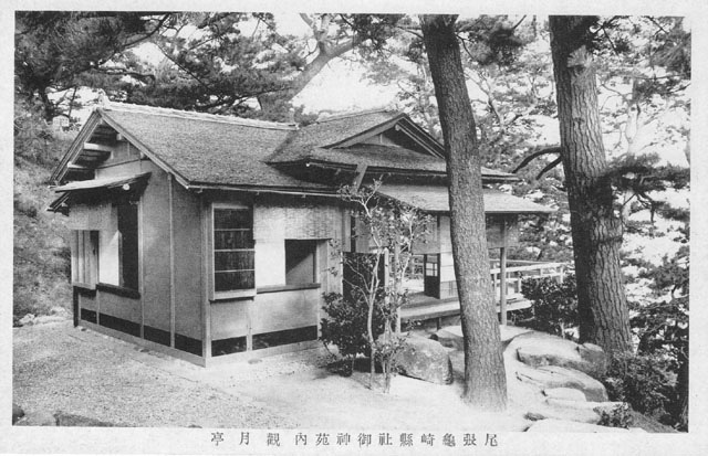 同年には、愛知県知事から"勝景 亀崎の月"の選定を受け、名所の高台(神前神社外苑/亀崎城跡)に「観月亭」が設けられました。そのころは毎年、観月茶会が中秋に開かれ、人であふれていたといいます。残念ですが昭和34(1959)年の伊勢湾台風で観月亭は倒壊。現在は黒田清綱の歌碑のみが佇んでいます。